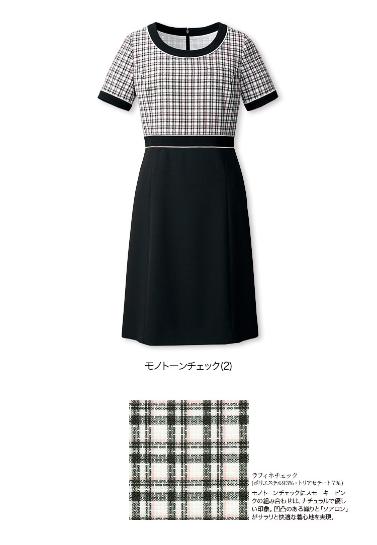 【在庫限り】[春夏用]<高通気>モノトーンチェック×ブラックのスタイルアップ、ワンピース(22-AR6669)