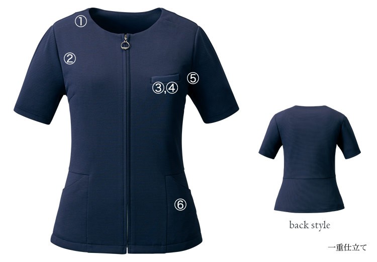 - 一重仕立て、左胸タフポケット、ペンホルダー、アクセサリー用ホール、ホルダーテープ(左のみ)、フレックスリーブⅡ、デオドラントテープ