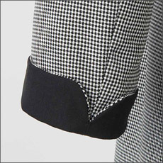 イマジネーションを誘うハーレキン柄が新鮮なノーカラージャケット。モノクロームな世界観の中に、チャーミングやクールといった、MARY QUANTらしいエッセンスを巧みにリミックス。