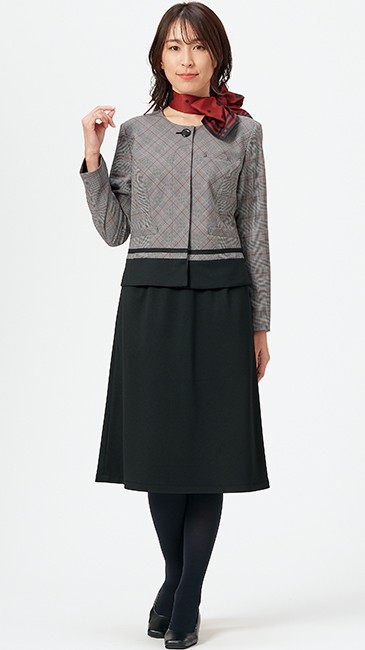 - チェック柄部分:グレナカートチェック(ポリエステル45%、ウール40%、複合繊維(ポリエステル)15% ※再生ポリエステル43%使用)、ブラック地部分:コンフォータブルニット(ポリエステル100%)