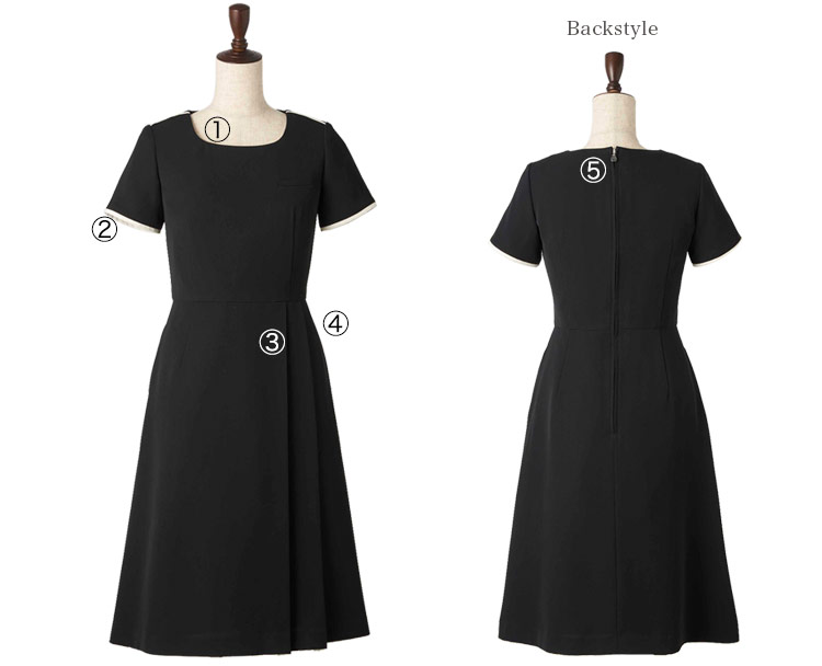 MARY QUANTデザインのモノトーンの大人かわいいワンピース。モノクロームな世界観の中に、チャーミングなエッセンスをリミックスしたおもてなしスタイル。