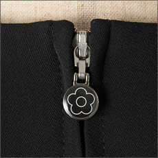 後ろファスナーのファスナーチャームは、ブランドモチーフのデイジー柄がかわいい。