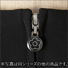 後ろファスナーのファスナーチャームは、ブランドモチーフのデイジー柄がかわいい。