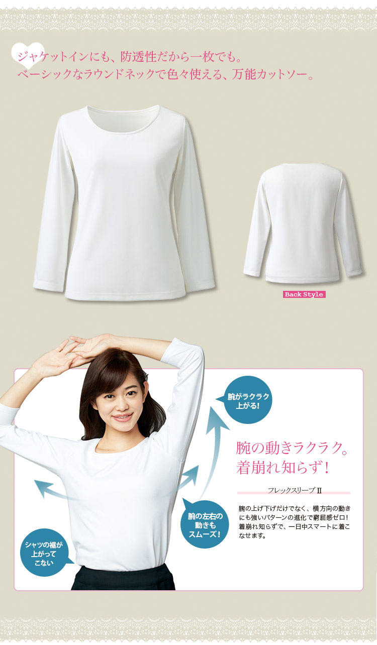 [通年]<優れた吸汗速乾性>使いやすいラウンドネックの八分袖カットソー(22-NF1037)