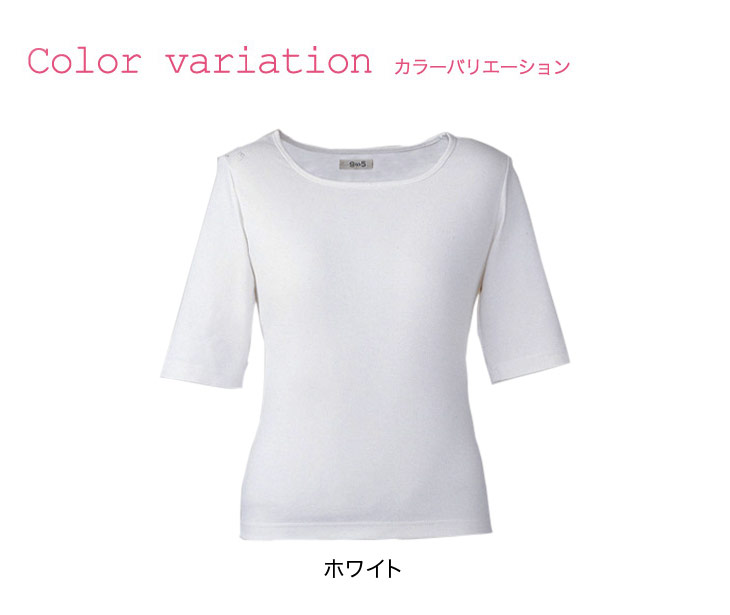 【在庫限り】[通年]優美なネックラインの五分袖カットソー<ホワイト>(22-NF15120R)