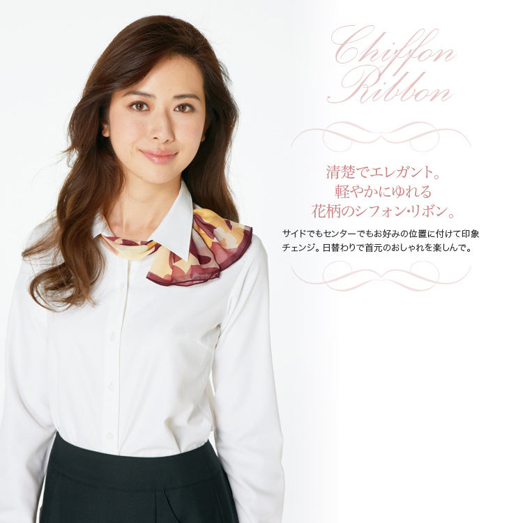 【在庫限り】エレガントな花柄の軽やかなシフォン生地・リボンタイ(22-NF165)