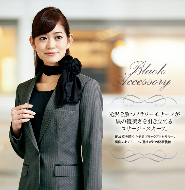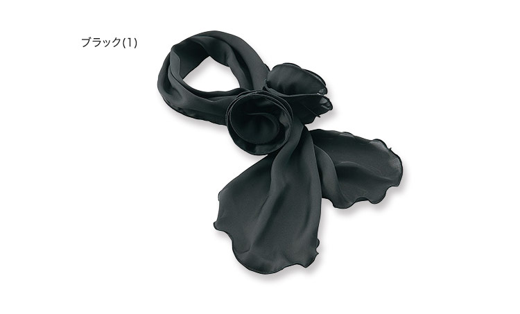 【在庫限り】[通年]フラワーモチーフが優美な黒のコサージュスカーフ(22-NF166)