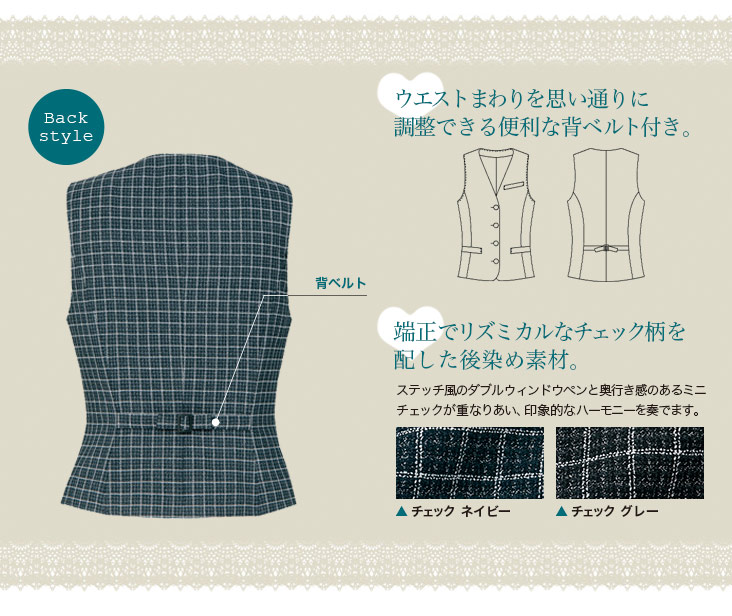 【在庫限り】[通年]ステッチ風チェックのベスト(22-UF2508)
