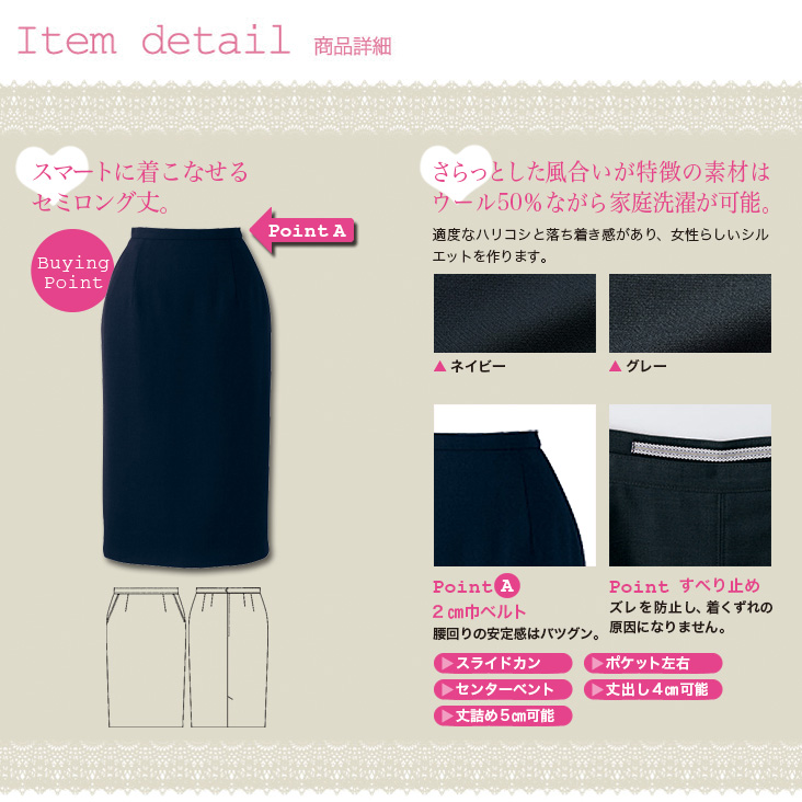 | スカート丈(ベルト下) | 57 | 57 | 57 | 57 | 57 | 59 | 59 | 59 | 59 | 59 |
