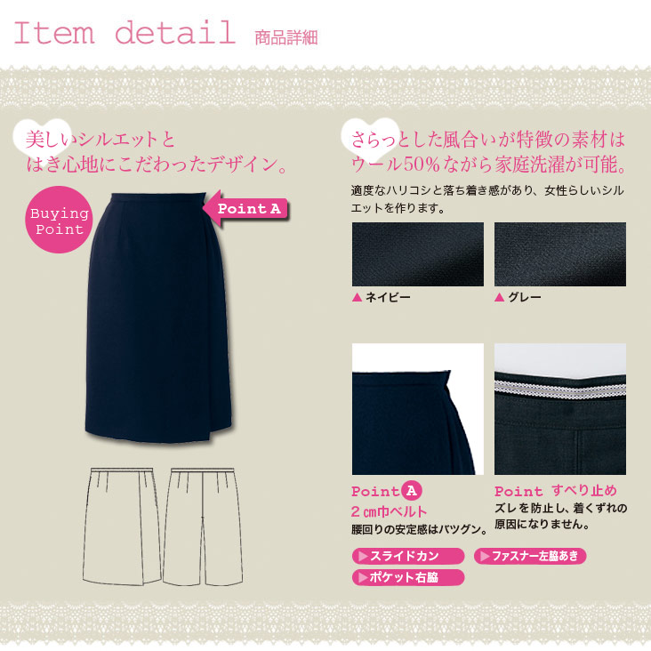 | スカート丈(脇丈) | 52 | 52 | 53 | 53 | 54 | 54 | 55 | 55 | 56 | 56 |