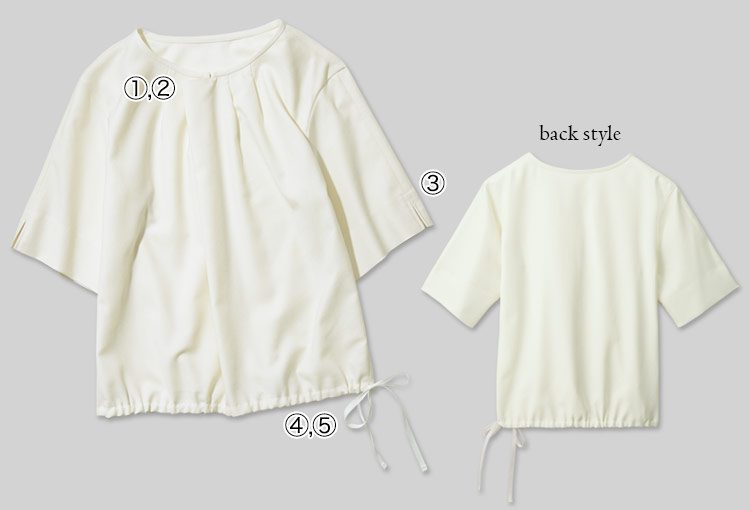 首回りのタックと旬なシルエットがおしゃれな、YUKI TORIIデザインのプルオーバーブラウス。ジャケットとのセットアップでもおしゃれにきまります。