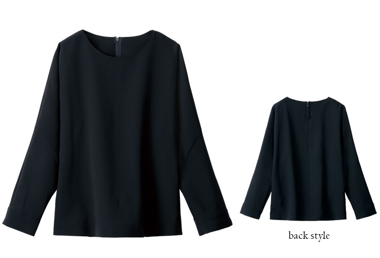 シンプルに見せながら、キモノスリーブとセットインを前後で変えるなど凝ったデザインのおしゃれブラウス。