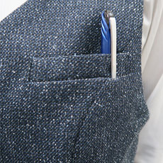 多色のブークレー糸を織り込んで、豊かなニュアンスを醸しだすブルーツイード。しなやかなタッチと適度なハリとコシ・ェ、立体感のある美しいフォルムを実現します。