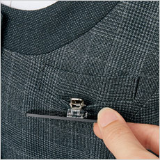 左胸ポケット付き。収納の邪魔にならない名札ホールも付いています。