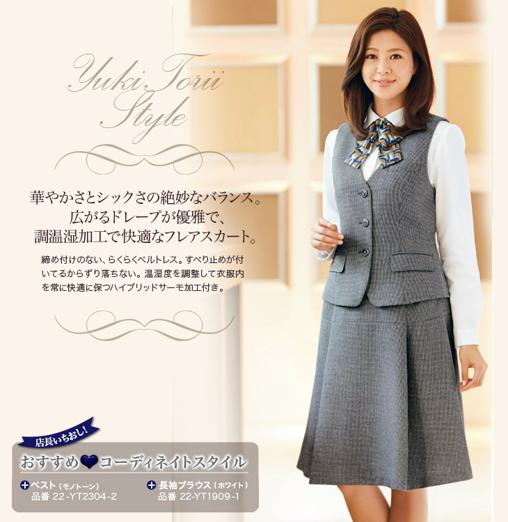見た目の高級感や美しさが魅力のYUKI TORIIの事務服は