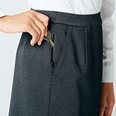 ウエスト前後のすべり止めにより、ブラウスの飛び出しを防ぎきちんと感をキープ。