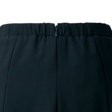 シルエットが美しい8枚はぎ。トップスをインした時もすっきりのベルトレス。後ろはゴム入りなので窮屈感がありません。