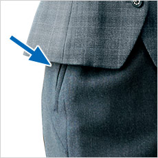 つなぎ目なしで後1枚仕立てのストレッチ裏地仕様。強度アップとほころ・ム防止効果があります。