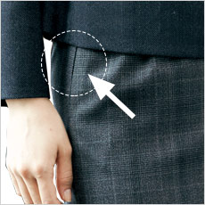 脇から後ろが絶妙な伸縮性を発揮し、座った時もウエストが伸びるからノーストレス!