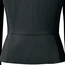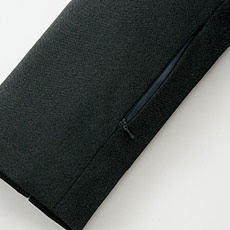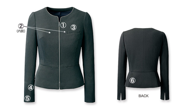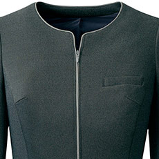 すっきりとしたノーカラー。ファスナーは両開きタイプで、着座の時など気軽に調整可能です。