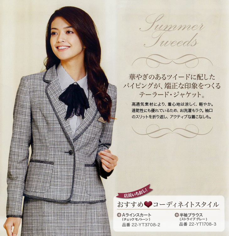 【在庫限り】[春夏用]YUKI TORII 高通気性で涼しい!ツイード素材のテーラード・ジャケット(22-YT4708)
