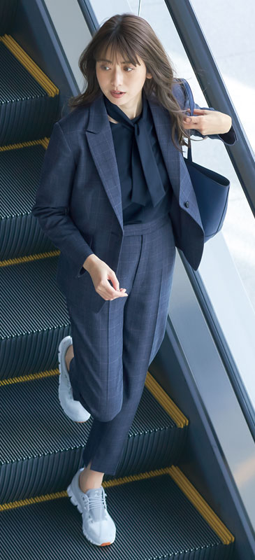 ポリエステル、ウール、レーヨンの3者混の糸を使用。しなやかな風合いで、奥行きのあるミックス感を表現したベーシックなブラックと新鮮なパープルのタッタソール。 クールさとフェミニンさを兼ね備えたペンシルラインが特徴です。