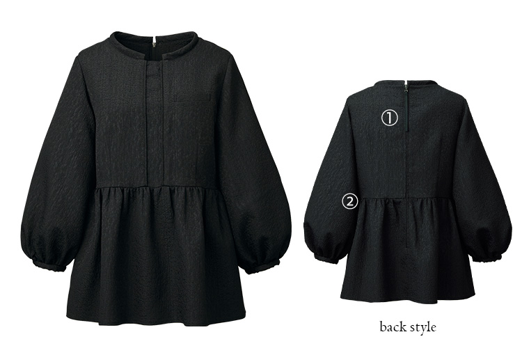 エアリーな膨らみと程よいハリ感のある素材を使用したプルオーバー。お腹周りやヒップをさりげなくカバーするペプラムデザイン。