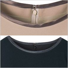 上品な光沢を放つサテン地のパイピングがエレガント見せるアクセント。