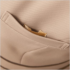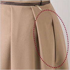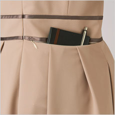 ウエスト背面にインカムやメモ帳が入るポケット付き。ファスナー付きで目立たないため、見た目はすっきり。