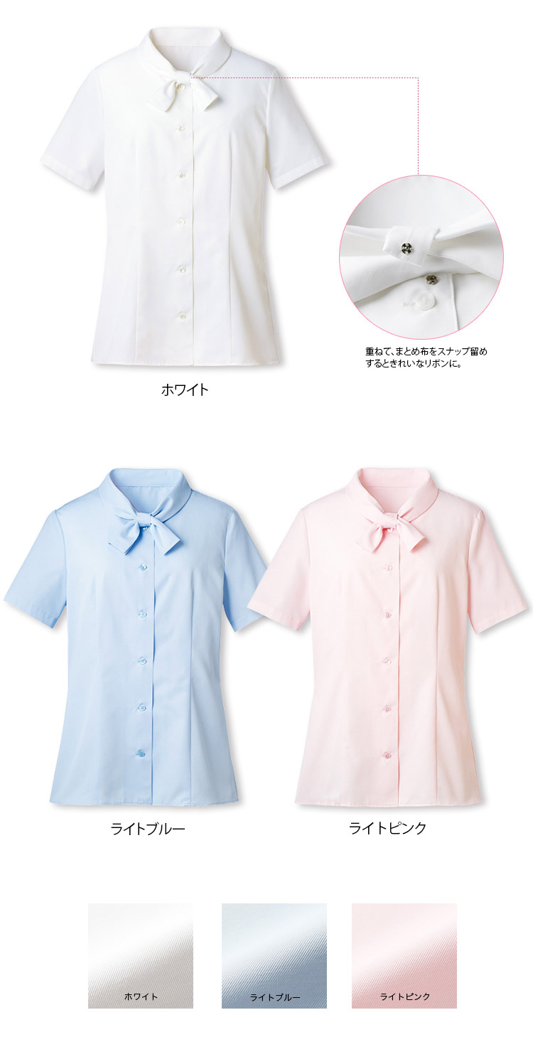 [通年]ムレない、透けない!可愛らしさときちん感あるリボンブラウス[半袖](23-8349)