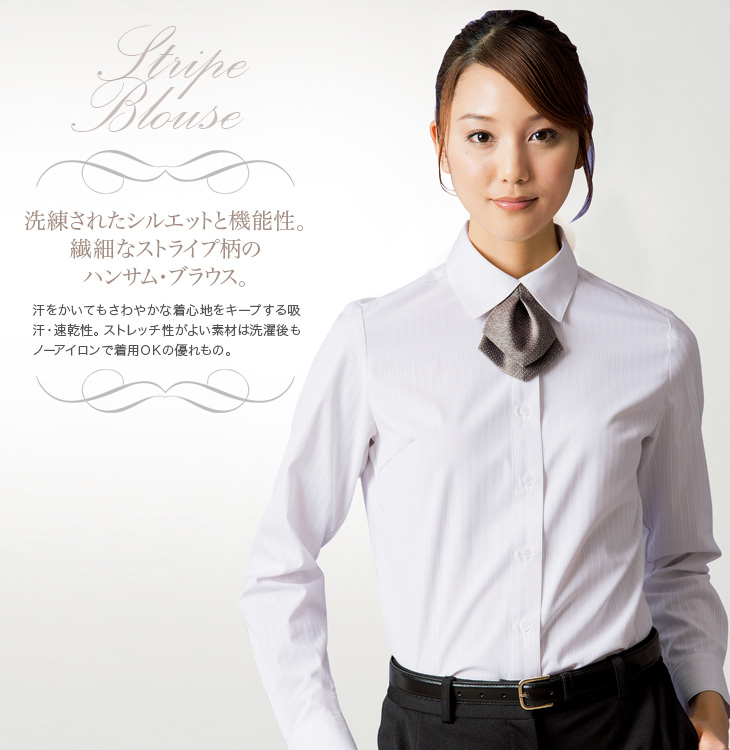 [通年]高機能素材を採用!繊細なストライプ柄のハンサム・ブラウス[長袖](23-8460)