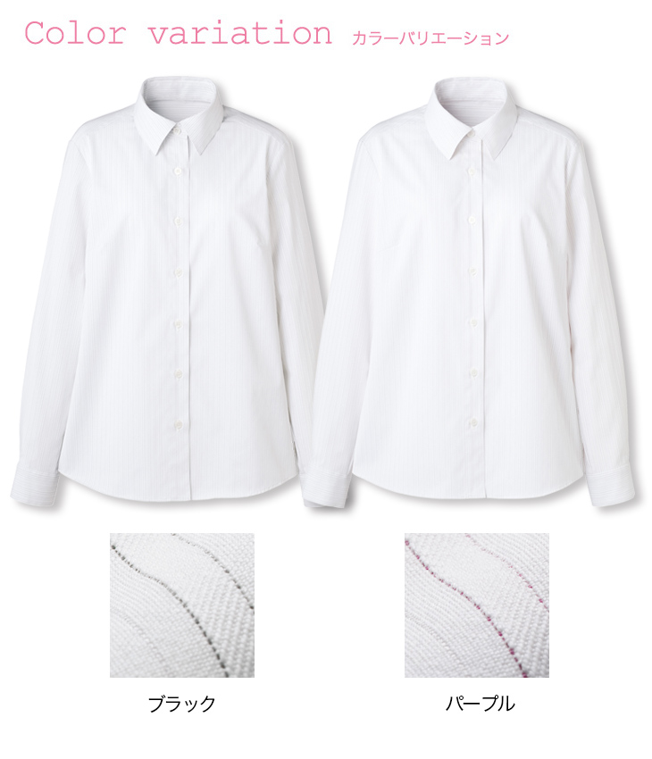 [通年]高機能素材を採用!繊細なストライプ柄のハンサム・ブラウス[長袖](23-8460)