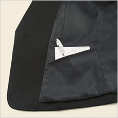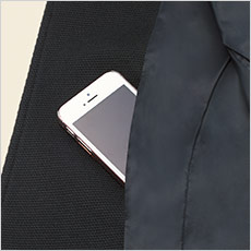 スマートフォンやネームホルダーが入る右胸内ポケット付き。