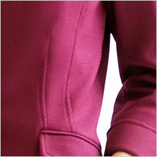 タテにもヨコにも伸びて動きやすいストレッチニット素材は、しっかり感があって型くずれしにくい上に通気性が高いので蒸れにくく快適です。