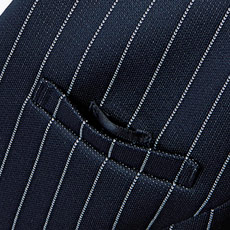 織物のような上質感がありながら、着心地に優れたニット素材。染めの変化で表情が異なる2つのストライプを表現しました。温湿度をコントロールするActiveWool®を使用しているためオールシーズン快適に着用できます。