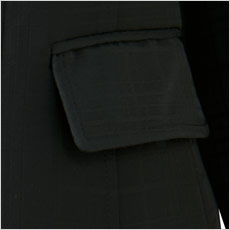 - 総裏、左胸ポケット、名札ループ、前ファスナー開き、両腰ポケット、袖口リターン可、背ベルト、アームホールに消臭テープ付き