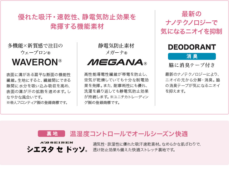 ●優れた制電性で不快な静電気を防止