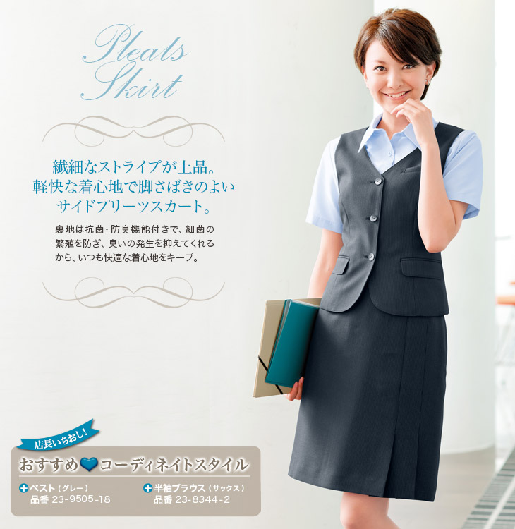 【在庫限り】[通年]上品な光沢と洗練されたストライプ柄プリーツスカート<55.5cm>(23-9806)