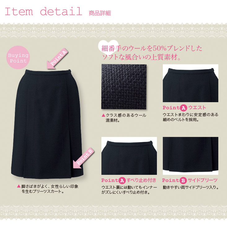 【在庫限り】[通年]<ブランドコラボ・JUN・ROPE style>両サイドプリーツ入りスカート(23-R801)