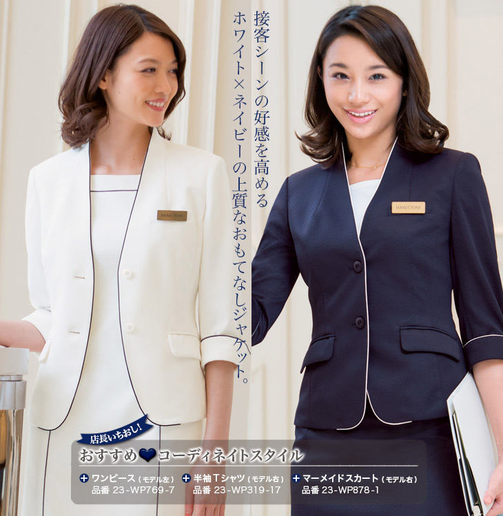 [通年]ホワイト×ネイビーのノーカラー・ジャケット[裏なし](23-WP165)