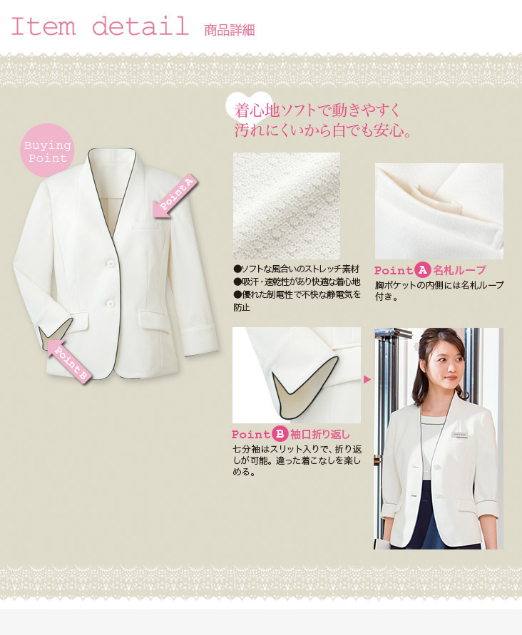 [通年]ホワイト×ネイビーのノーカラー・ジャケット[裏なし](23-WP165)