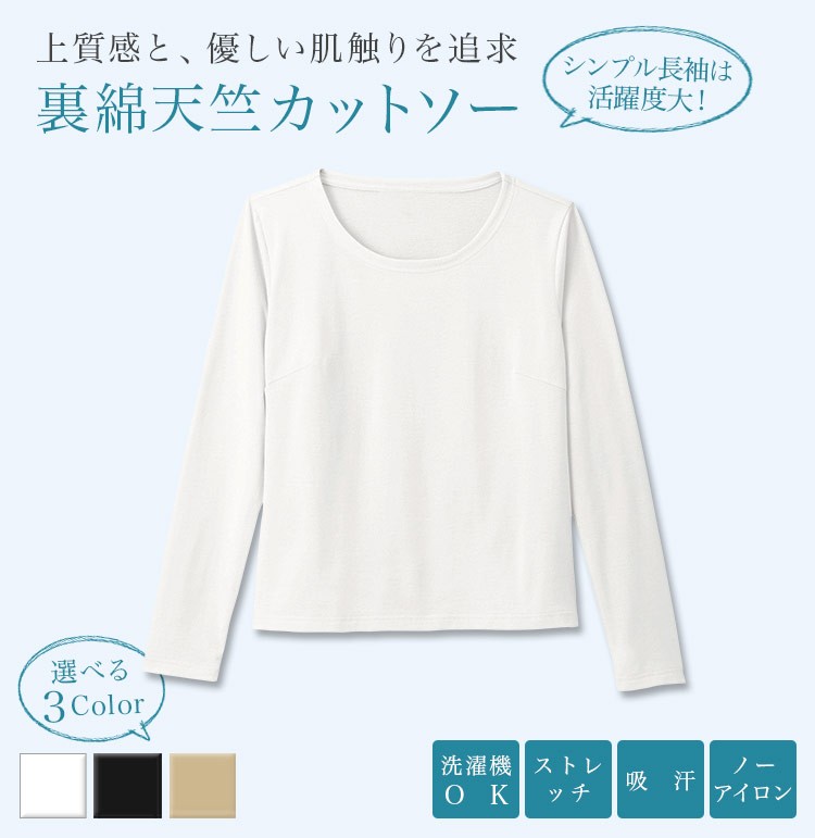 上質感と優しい肌触りを追求したカットソー。 吸汗性と速乾性に優れ、洗濯機もOK。 ノーアイロンで着用できます。女性に安心な透け防止が加工されています。