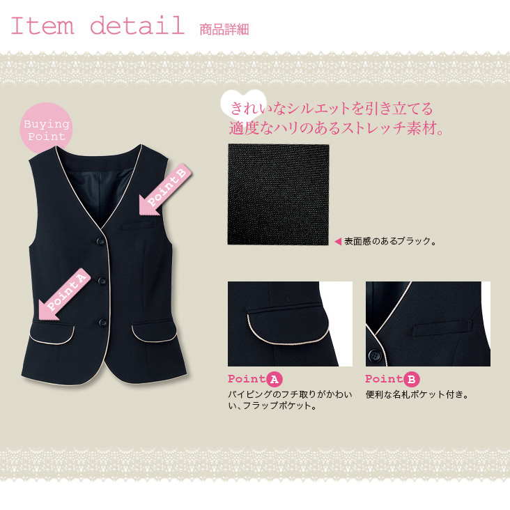 【在庫限り】[通年]レース風パイピング・ベスト(23-WP558)