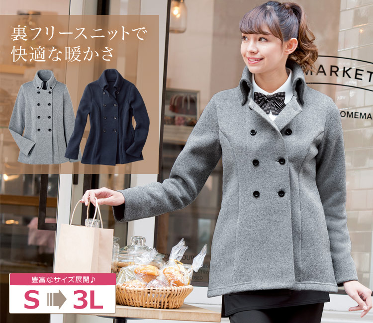【在庫限り】[秋冬用]裏フリースニットで暖かいショップコート(23-WP766)
