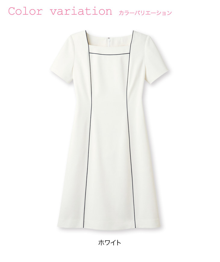 [通年]<ホワイト×ネイビー>縦ラインでスマートに見せる白いワンピース(23-WP769)