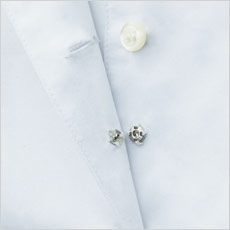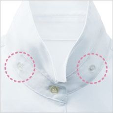 襟元にはアクセサリー用のボタン付き。スカーフやリボンがずれないからいつでもきちんと。