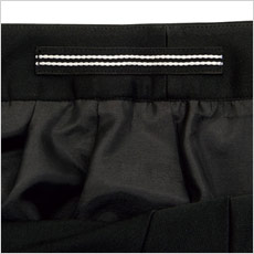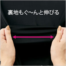 可動式のウエストと下腹部のストレッチ裏地で、ウエストまわりだけではなく下腹部までぐーんと伸びるので、座った時のお腹まわりの窮屈感を軽減してくれます。