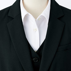 すっきり仕立て映えする梳毛ウールの良さを生かしたシンプルなピンストライプで細めのピッチ、控えめなラインが女性らしく着こなしやすい柄です。伸縮性と耐久性のあるストレッチ糸「T400」と細く上質なポリエステル繊維「トレビラ?」を使用することで、ソフトで軽い着心地の2WAYストレッチを実現しました。