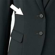 後ろ裾はベンツ入りで、着席時などの動きをサポート