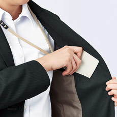 胸ポケットにはネームプレート専用スリット付き。ペンを何本差していても邪魔になりません ※写真は同シリーズのベスト